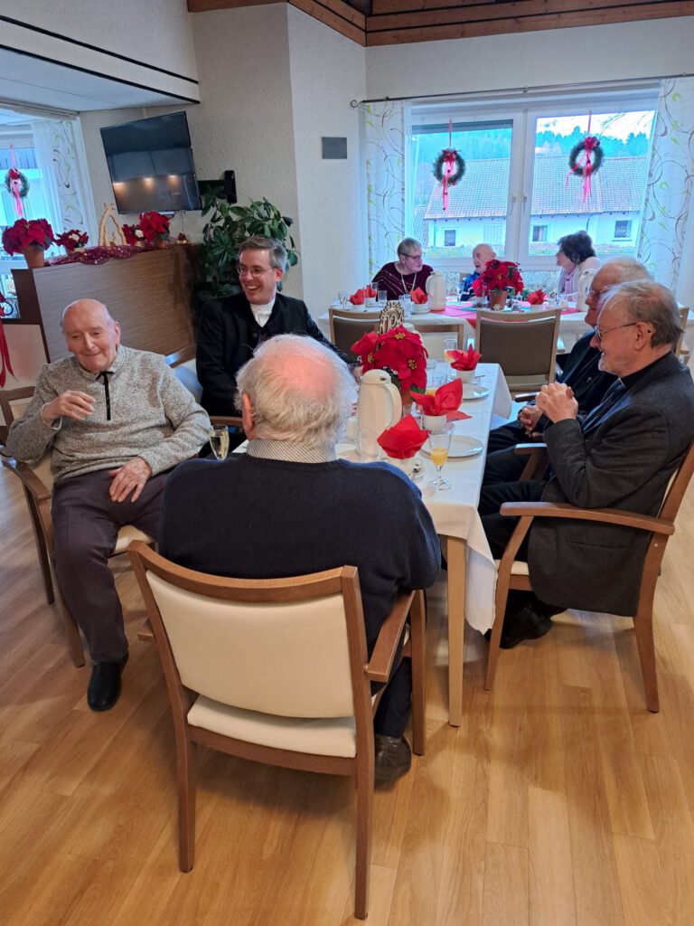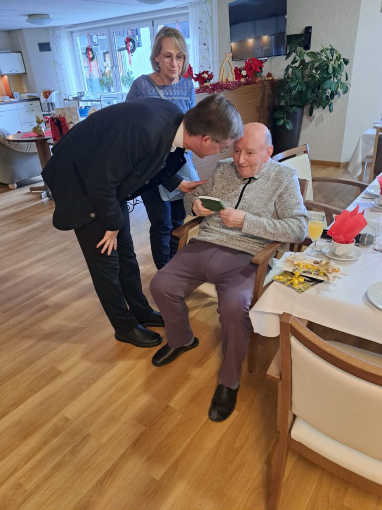 Eine besondere Überraschung bereitete dem Jubilar während der Feierstunde die Jugendblaskapelle aus seiner Heimatgemeinde Parkstein, die mit dem Choral „Großer Gott, wir loben dich“ und einigen Märschen musikalische Glückwünsche überbrachte. Auch die Zupfer-Moidln aus Neustadt/WN besuchten den Jubilar und wünschten ihm gesanglich Gottes Segen. Die Stadtpfarrei St. Georg feiert mit Pfarrer Busch in der Altenheimkapelle St. Martin in der wöchentlichen Freitagsmesse einen adventlichen Dankgottesdienst.